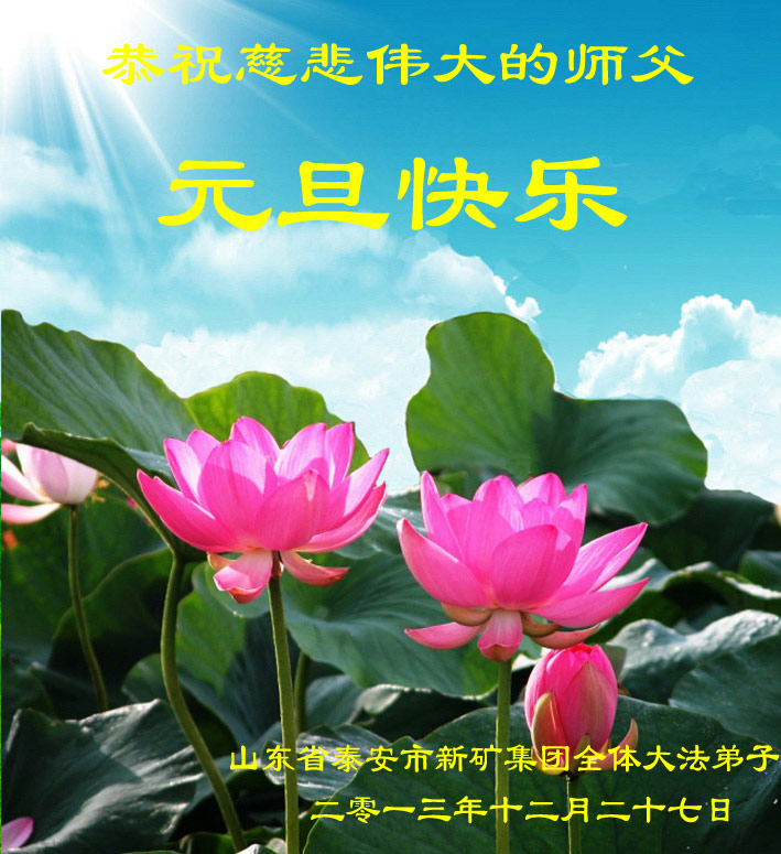山東省泰安市新礦集團全體大法弟子恭祝慈悲偉大的師父元旦快樂!