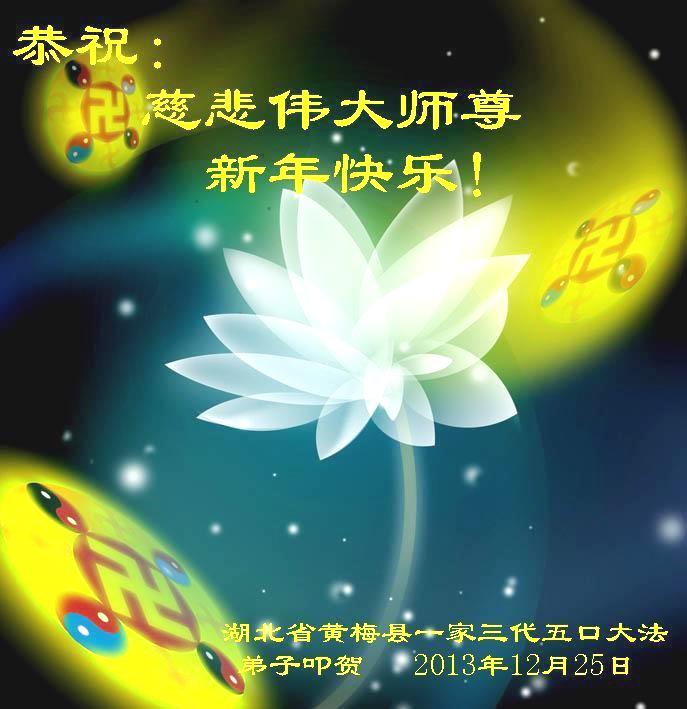 新年到了,我們一家兄妹五位(包括我丈夫)大法弟子向偉大的師尊拜年,祝師尊新年快樂,在新的一年裏我們更加勇猛精進,做好三件事,跟師父圓滿回家。