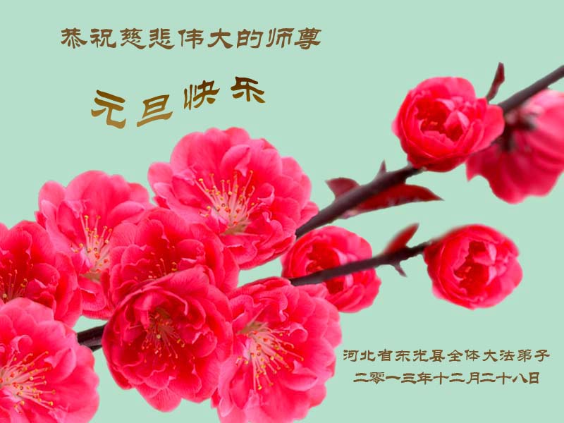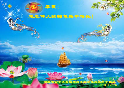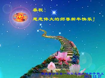 又一年元旦到了,本學法小組全體同修、也代表不會上網的同修恭祝師尊元旦快樂!我們一定努力整體配合做好三件事,儘量讓師父少操點兒心。叩謝師尊!