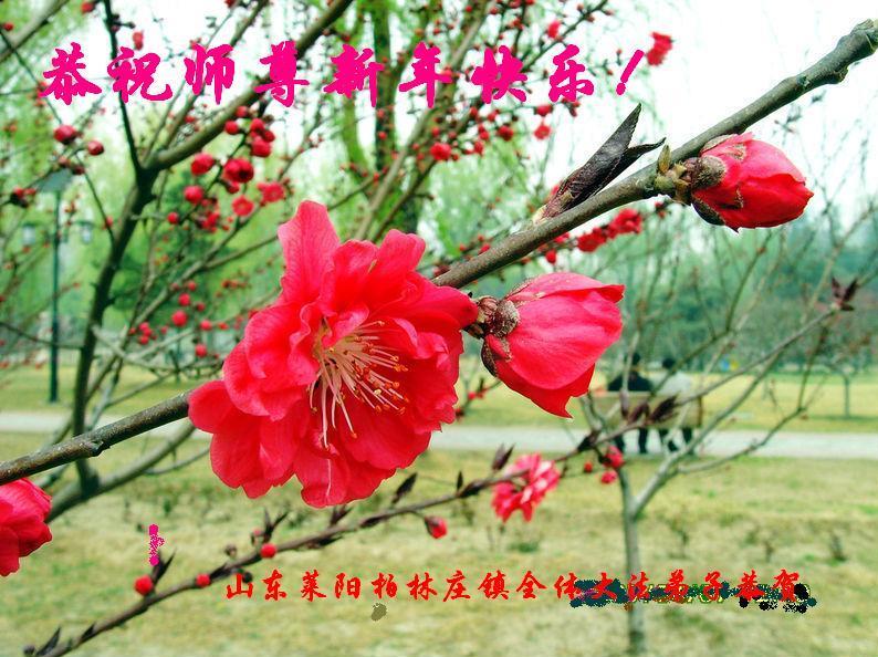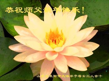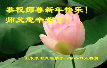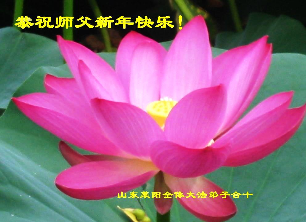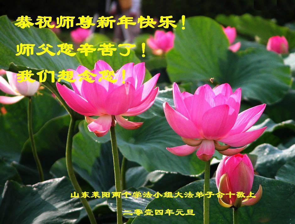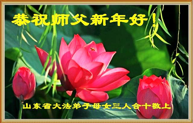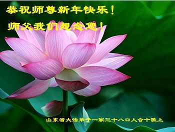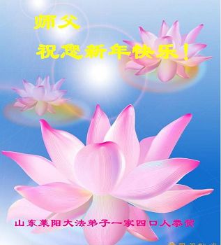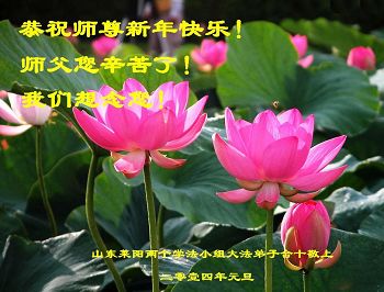 山東棲霞全體大法弟子恭祝慈悲偉大師父元旦快樂!感謝師尊的慈悲救度!我們一定盡最大努力做好三件事,讓師尊多一份安慰。願師尊笑口常開,早日回國。