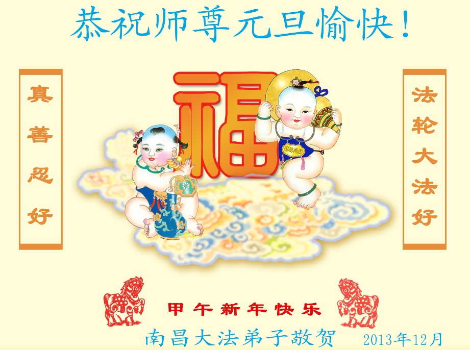 2014元旦即將來臨,值此之際江西九江地區全體大法弟子恭祝偉大師尊新年快樂!叩謝師恩救度!在以後正法、救度眾生的使命上不止步!師父謝謝您!
