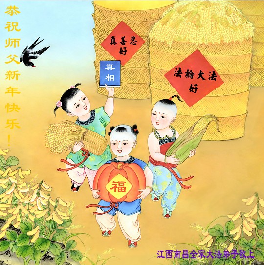 江西南昌一家三代大法弟子向偉大慈悲的師父跪拜問好!感恩師父的慈悲苦度,祝師父在新的一年裏多一點欣慰,少一點辛勞,祝師父新年吉祥!