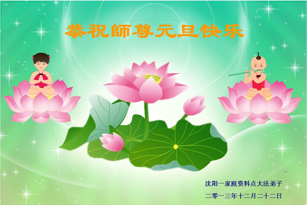 弟子在新的一年,謹遵師尊教誨,精進做好三件事,慈悲救度眾生,修去所有的常人心:名、利、情、色、欲、怨恨心、爭鬥心,顯示心、歡喜心。修出慈悲心,修出無私無我,先他後我的正覺,同化宇宙特性真善忍,圓滿隨師返家園。
