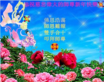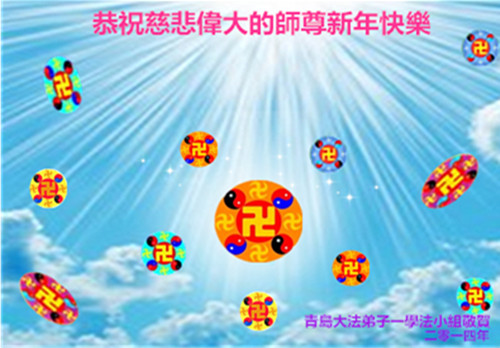 值此新年佳節之際,我們學法小組的全體大法弟子無不珍惜在過去的一年裏師父對每一個弟子的慈悲保護,日日沐浴在佛恩浩蕩中。在新的一年裏我們要繼續完成師父安排的證實法、救度眾生的三件事,走好最後助師正法、救度眾生的正法修煉之路。做一個合格的大法弟子!