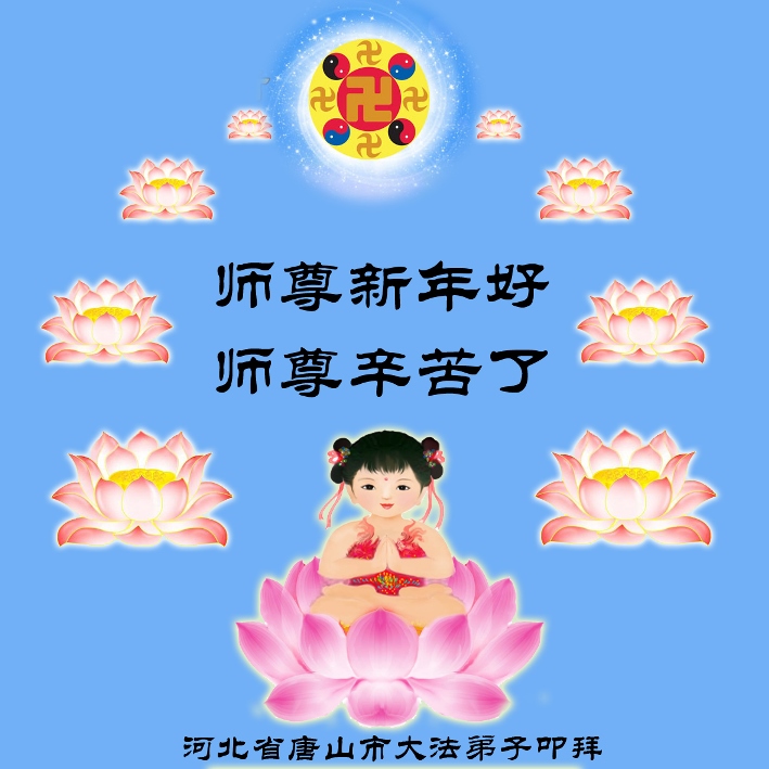 河北省玉田縣大法弟子春蕾、春韻叩拜慈悲偉大的師尊!祝師尊新年快樂、身體健康、萬事如意!