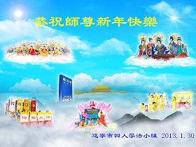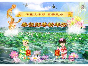 冰雪融化,新春來到,天上人間齊頌揚;歡歌笑語,鑼鼓喧天,得救眾生齊歡唱!在爆竹聲聲喜迎新春的歡慶聲中,我們全體弟子懷著無比喜悅的心情向慈悲救度我們的師尊真誠的道一聲:師尊新年好!弟子們十分想念您!請師尊放心吧,弟子們會一如既往的走好師尊安排的正法之路,儘量讓師尊少操些心,我們一定會牢記師尊的諄諄教誨,修好自己,多救世人。做好三件事,堅修大法到底,放棄世間執著,跟師尊回家。