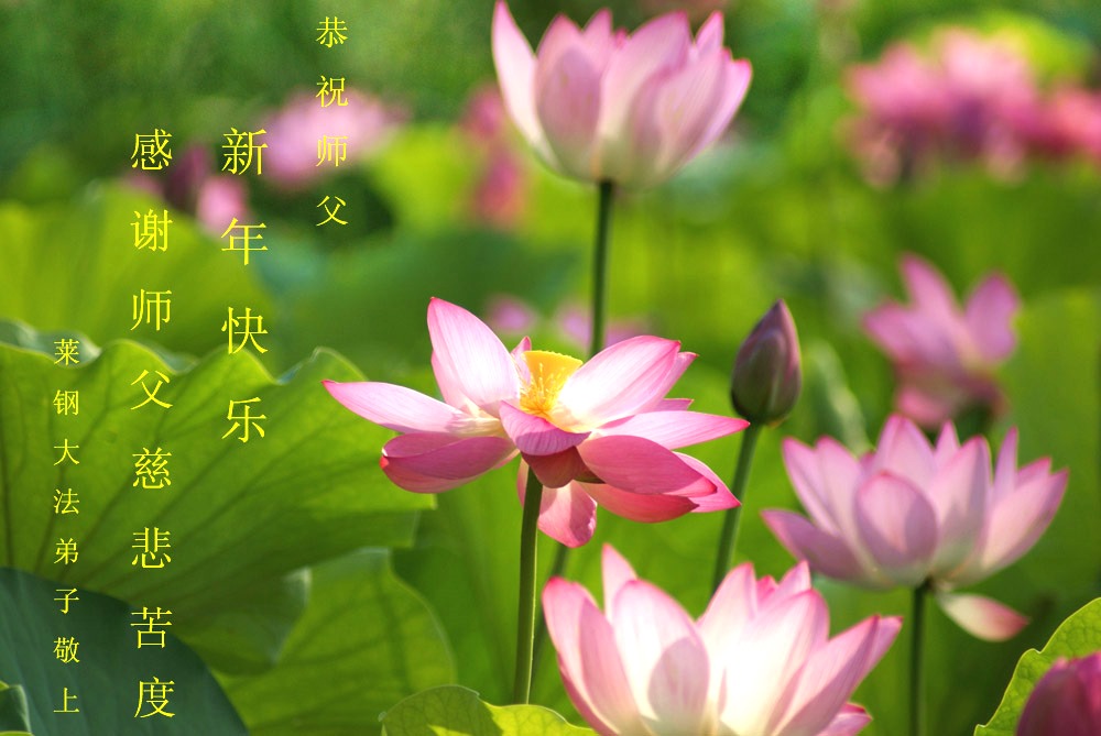 新年到來之際,弟子們恭祝慈悲偉大的師尊新年快樂!並讓師尊放心,弟子會聽師父的話,向內找,放下自我,形成整體,做好三件事,助師正法,救度眾生。完成史前大願。