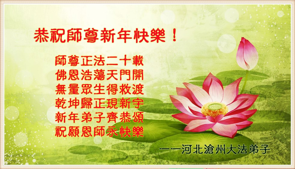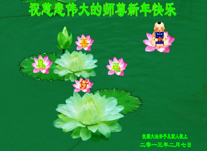 我是大陸山東省的大法弟子,值此新年之際,恭祝師尊新年快樂!我不會做,可能做的太簡單了,主要是想表達一下心意吧。
