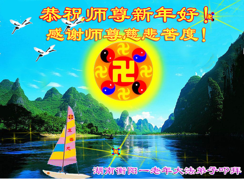 師尊您辛苦了!大法弟子全家恭祝慈悲偉大的師尊新年快樂!