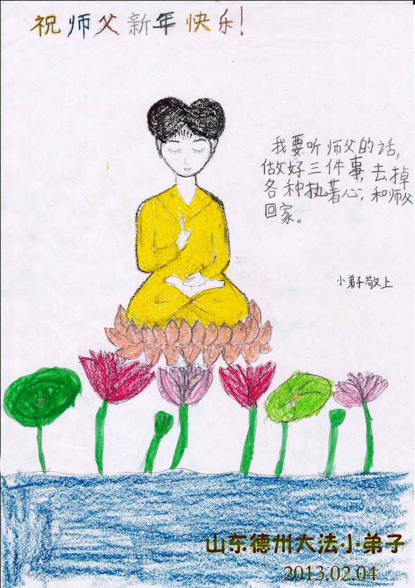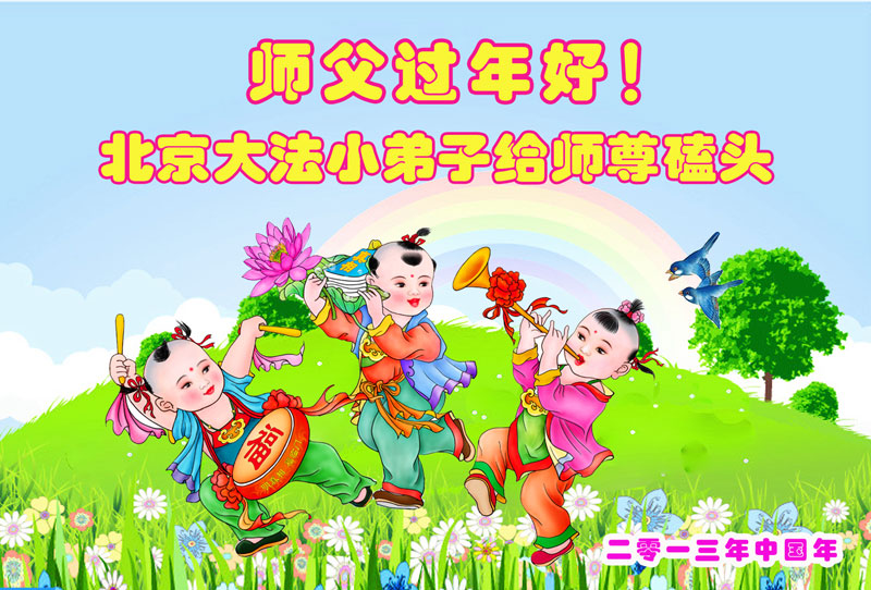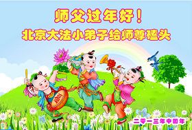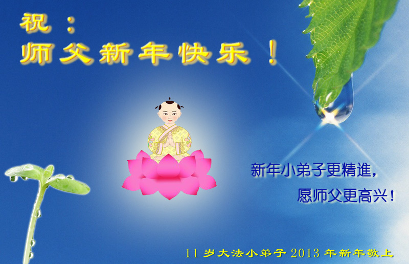 在此新年來臨之際,我們一家大法弟子(兩個小弟子)向偉大的師父致以最崇高的敬意!願師父新年快樂!新年好!中原油田大法弟子全家跪拜!2013年2月5號