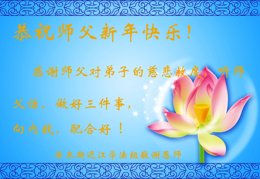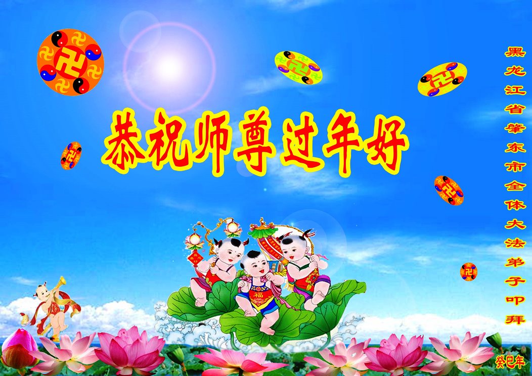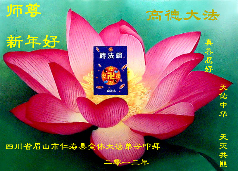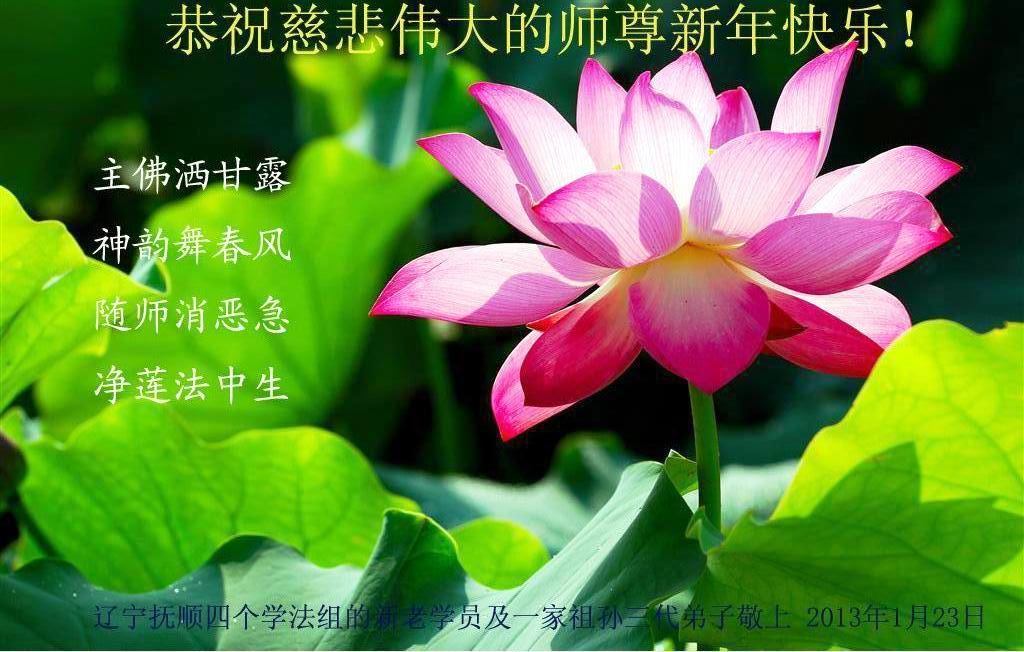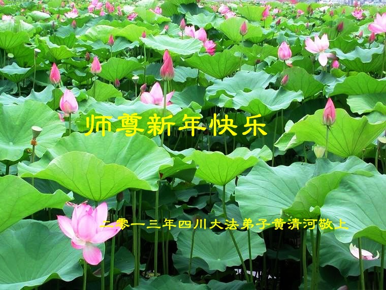 二零一三年新年即來臨大陸一地區全體大法弟子向師尊問好 恭祝師父新年好!祝師父新年快樂! 祝師父全家新年快樂!