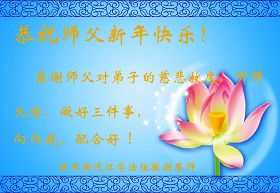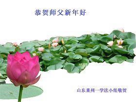 您好!俗語說:每逢佳節倍思親。師父,弟子們非常想念您!在除夕佳節即將到來之際,我們學法小組的同修們給師父獻上最衷心的祝福:師父,過年好!跪拜師父。