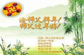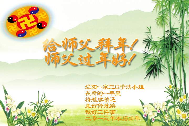 遼寧遼陽一家三口大法弟子給師父拜年:恭祝師父過年好!