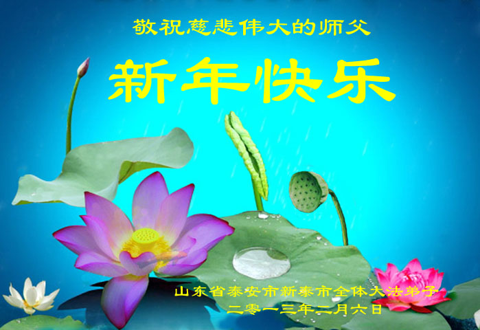 山東泰安市新泰市全體大法弟子恭祝慈悲偉大的師尊新年快樂!