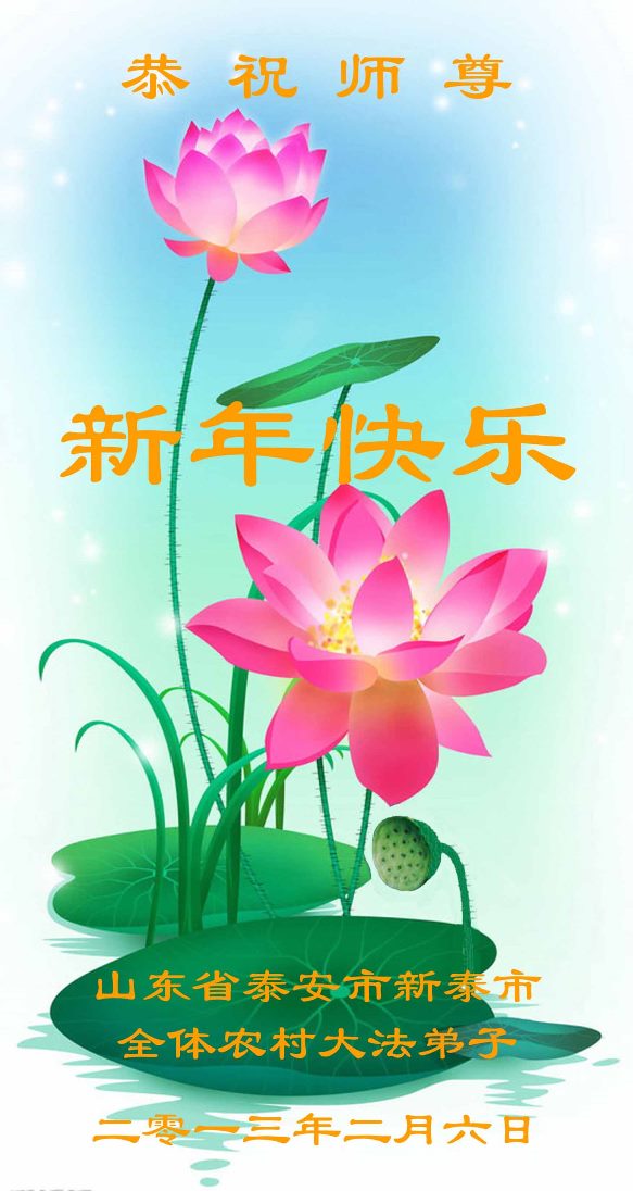 山東泰安市新泰市全體農村大法弟子敬祝慈悲偉大的師父新年快樂!