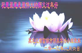 歷史進入了嶄新的二零一三年,我們大法弟子都明白師尊為眾生的巨大承受,我們也明白救度眾生的緊迫。我們唯有聽從偉大師尊的教誨,學好法,講清真相救度眾生,發好正念,才是我們在兌現自己史前的誓約。最衷心的恭祝我們最慈悲最偉大的師尊新年好!祝福送來我們感恩的心!我們一定聽從師尊的教誨,最好大法弟子該做的三件事。