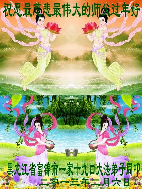 黑龍江佳木斯地區富錦市明真學法小組祝願最偉大的師父過年好!