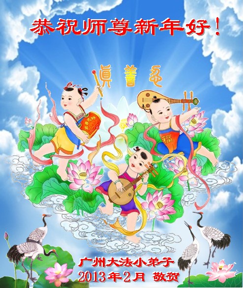 師尊過年好!廣州市天河區五山農科院地區大法弟子祝偉大的師尊新年快樂,十分感謝師尊一直以來對弟子們的加持,不斷的點化與鼓勵,師尊的寬宏大量與佛恩浩蕩我們銘記在心,永遠感激不盡。