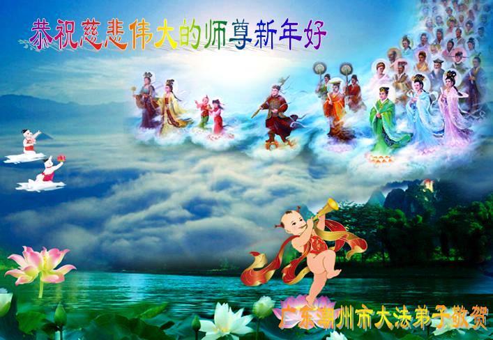 慈悲偉大的師尊:新年快樂!茂名大法弟子向師父拜個早年,茂名大法弟子緊跟師尊,助師正法救度一切有緣人。