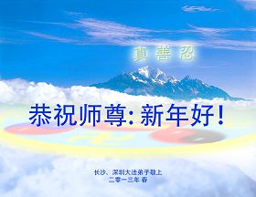 我是大陸大法弟子,現在國外念書。值此新春佳節,特向師尊呈上一份新年賀卡,略表心意。