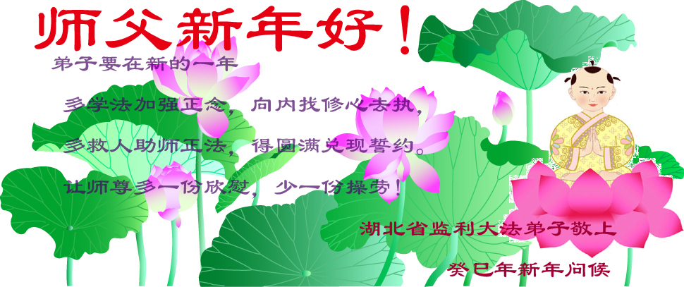 慈悲偉大的師父:新年好!全體荊門市大法弟子提前給您拜年啦!祝您新年快樂!我們一定牢記師父的教誨,努力修好自己,更加理智清醒的救度更多有緣眾生,不負師父的慈悲苦度!跟師父回家!