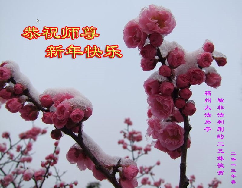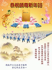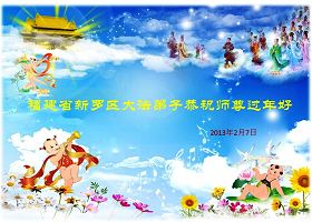2009年得法的學員,在修煉法輪大法中受益,無法用語言表達大法美好,做好三件事跟師尊回家,我全家人員利用過年之際,向師父拜年,表達感恩之情,並與世人分享法輪大法的美好。
