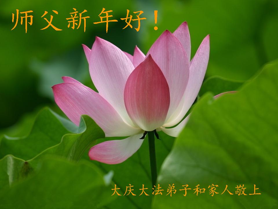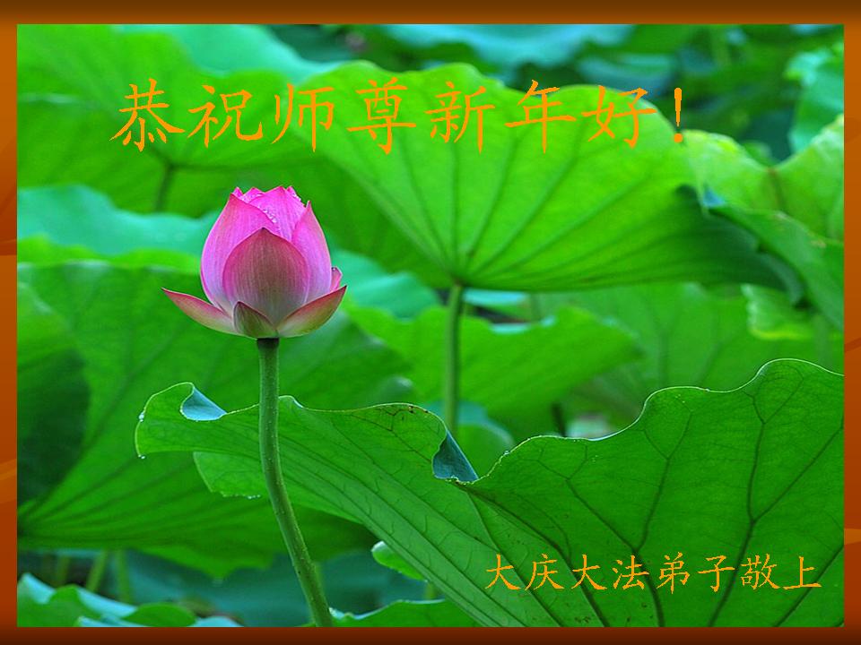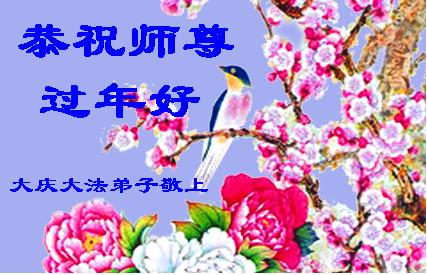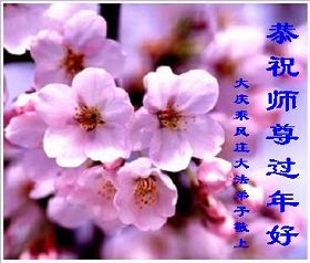 大慶大法弟子給慈悲救度我們的偉大師尊拜年:恭祝慈悲偉大的師尊新年好!師尊新年快樂!
