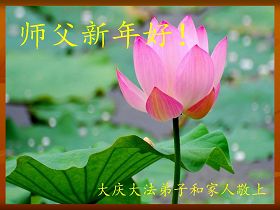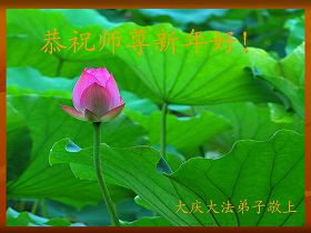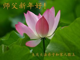 在新的一年到來之際,我們夫妻倆向偉大慈悲的師父拜年問好,祝師父新年快樂,萬事如意。在新的一年裏,我們一定要牢記師父的諄諄教導,修去所有的執著,勇猛精進,再精進,做好弟子應該做的三件事,決不辜負師父的慈悲苦度。