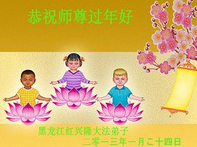 師尊您為了救度眾生、為救大穹,洪傳宇宙大法,承擔了眾生的無量業債,承受了巨大的苦難。現在的每一天、每一分、每一秒都是師尊用巨大的承受為大法弟子、為眾生延續來的,這時間轉瞬即逝,弟子應珍惜得之不易的修煉之緣。弟子用盡人間語言也表達不了師尊的慈悲偉大、佛恩浩蕩。千言萬語彙成一句話:恭祝師尊新年快樂!