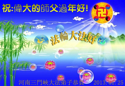 河南三門峽地區大法弟子向偉大的師尊問新年好!