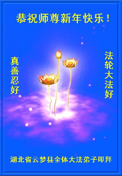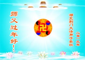 尊敬的師父:弟子給您拜年!我非常想念師父!在新的一年裏,在法正人間的最後時間裏,我更要按宇宙大法「真、善、忍」的標準嚴格要求自己,處處向內找,提高心性,努力去做三件事,做好三件事,跳出常人中的殼,跟師父回家。