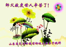 請師父放心,弟子會在新的一年裏,用心的學好法,修好自己,與同修們配合的更默契,攜手並肩,共同的做好三件事,不辜負師父從古到今的再度、苦度之恩。念至此,早已是淚流滿面。師父啊,師父,真真的謝謝您!謝謝!
