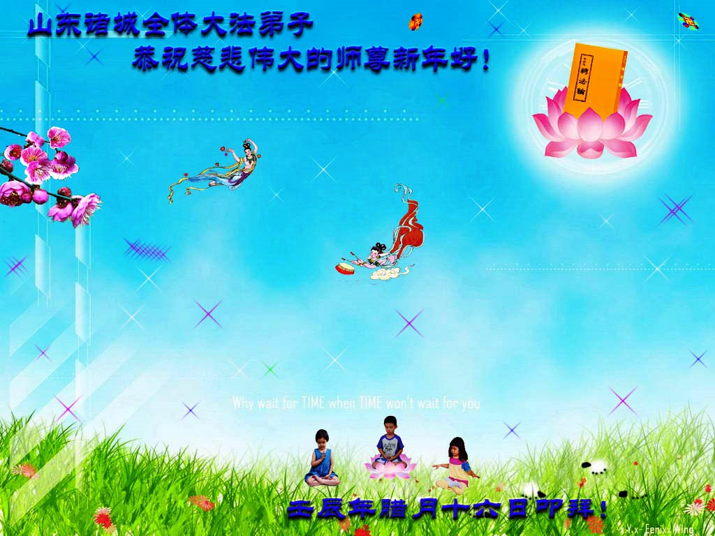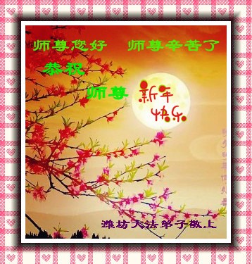 在師尊的慈悲呵護下,層層法理助我們在正法的路上闖過了十三個年頭的風雨歷程。期間我們有過精進,有過懈怠;有過清醒,有過迷茫,磕磕絆絆互幫互助。心性的提高,整體的昇華,都是師尊精心呵護的成果。弟子無以回報,只有放下人心,精進實修報師恩。時時刻刻的思念,日日夜夜的祈盼匯成一個心願,恭迎師尊早日回大陸與弟子團聚!眾弟子跪拜師尊!師尊弟子們給您拜年了!師尊新年快樂!新年好!新年弟子更精進!惟願師尊笑!
