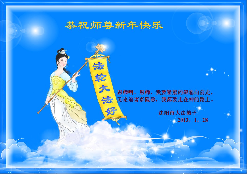 恭祝師尊癸巳年新年快樂!在修煉的道路上,無時無刻的感受到師尊的呵護和期望,在剩下的時間裏,我們要更加清醒理智的修好自己,慈悲救度世人,兌現自己史前的誓約。