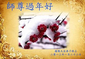 轉眼間要過大年了,我們全家人給尊敬的恩師拜年了:師父過年好!弟子一定時刻以法為師,百分之百的信師信法,遇事向內找,修好自己更好的完成救度眾生的神聖使命。念師父,盼望師父早日回大陸。深深叩拜恩師苦度救命之恩!