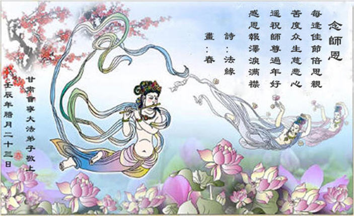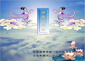 弟子拜謝師父救度洪恩!十幾年來,弟子在師尊的慈悲呵護下一路走來,深深的體會到了大法的神奇和殊勝,弟子身心得到了淨化,那種無私無我、慈悲祥和的美妙境界無以言表!師尊的佛恩浩蕩弟子無以為報,唯有更加精進,做好三件事,讓更多的生命明白真相,看到大法的神奇和美好,脫離邪黨的精神桎梏,為自己選擇一個美好永恆的未來。再一次跪拜師父!合十!
