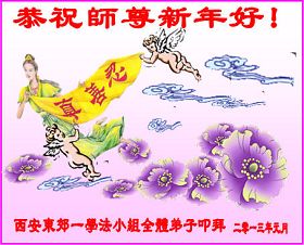 陝西省西安東郊一學法小組全體大法弟子恭祝師尊新年好!