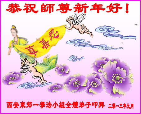 陝西省西安南郊大法弟子恭賀慈悲偉大的師尊新年快樂!