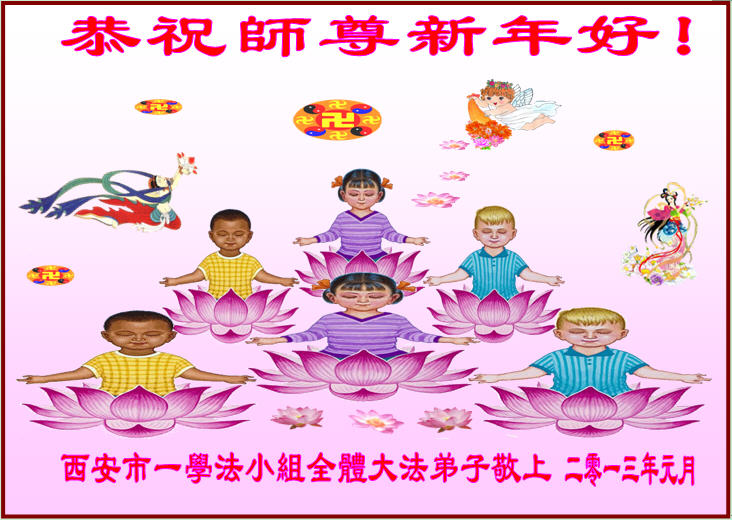陝西省西安一學法小組大法弟子恭祝慈悲偉大的師尊新年好!