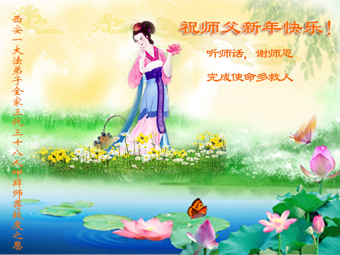 新疆住西安大法弟子全家恭賀師父新年好!