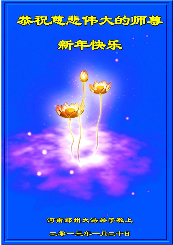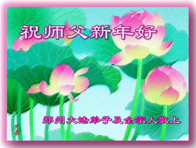值此新年來臨之際,鄭州一大法弟子家庭恭祝「師尊新年好!」感謝師尊救度之恩。在新的一年裏,弟子一定多學法,走好走正每一步,完成師尊交付的重任,不讓師父失望,圓滿隨師歸。