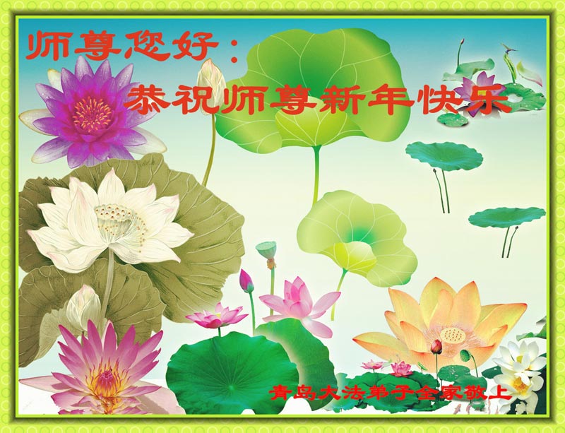 山東省青島一大法弟子家庭全體大法弟子恭祝慈悲偉大的師尊新年快樂!