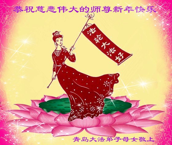 山東省青島大法弟子母女恭祝慈悲偉大的師尊新年快樂!
