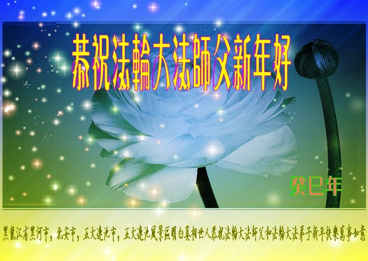 在新的一年來臨之際,祝師尊新年快樂!師父辛苦了!弟子一定聽師父的話,學好法,煉好功,認真做好三件事。放下所有執著心,與同修配合好多救人,一定達到師父要求的標準。堅定實修,一定不辜負恩師的慈悲苦度,兌現史前誓約。