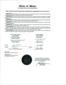 由州務卿確認的決議案的複印件,將陳列在緬因州州務卿辦公室。