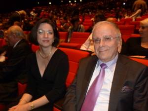![]() 交響樂團指揮Richard Boudarham與抒情女高音Elena Glazyrina觀賞了美國神韻紐約藝術團在巴黎的演出。 |
