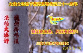 大陸大法弟子恭賀師尊傳法二十一週年!