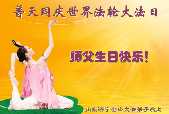 山東濟寧全體大法弟子恭祝慈悲偉大的師父生日快樂!