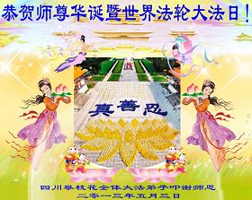 四川省綿陽市鹽亭縣全體大法弟子恭祝師尊生日快樂暨世界法輪大法日!