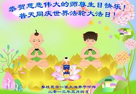 全世界大法弟子恭祝偉大師父華誕暨法輪大法洪傳世界二十一週年!